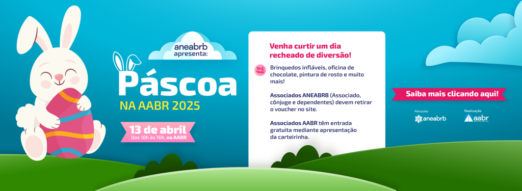 ANEABRB apresenta: Páscoa na AABR! Um dia de alegria, brincadeiras e gostosuras para toda a família! Vem curtir essa doce aventura com a gente! Data: 13 de abril (domingo)Horário: Das 10h às 16hLocal: AABR Chocolate, diversão e alegria para toda a família:Animação Infantil: Sol e LuaBrinquedos infláveisOficina de chocolatePintura de rostoCachorro-quente, pipoca, picolé e refrigeranteFood trucks […]